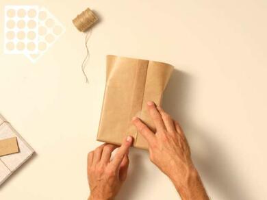 - Προσθέστε οπτικό ενδιαφέρον στο δώρο αναδιπλώνοντας δύο φορές τη μία πλευρά του καφέ χαρτιού.