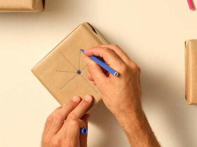 - Μόλις τυλίξετε το δώρο σας σε καφέ χαρτί για δέματα (δείτε τη βιώσιμη ιδέα περιτύλιξης 1), χρησιμοποιήστε λεπτά στυλό σχεδίασης και μαρκαδόρους για να προσθέσετε ζωγραφιές.