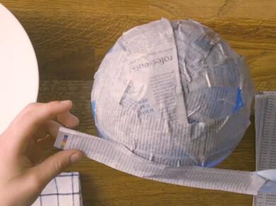 Once the final layer of newspaper strips has dried, ease your paper maché off your mould. If you've used a balloon, you can carefully pop the balloon so that it deflates. Remove the deflated balloon and your DIY paper maché bowl will stand intact.