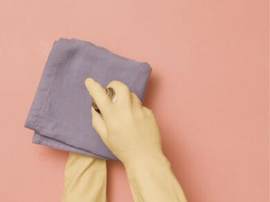 Take a clean and dry piece of cloth or kitchen paper and dab at the affected area. This method works by dissolving the oil in the Blu Tack® - It is then lifted off the surface when you dab with the dry cloth or kitchen paper. And that’s it, you’ve removed the Blu Tack® stain from your wall!