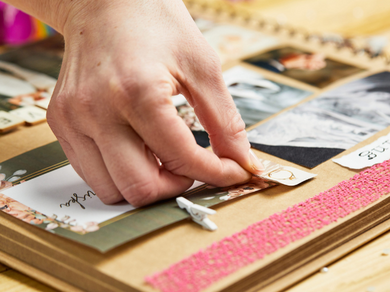 - Step 5: Apply further dots to each element of the memory frame: photos, postcards, tickets, dried flowers, leaves or feathers. Press each piece into place on the card backdrop. With Removable Glu Dots, you can change the layout around until you are happy with the finished effect.