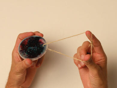 - Step 5: Punch or poke a hole through, close to the rim of the lid and thread through a ribbon, tying a knot or bow to create a loop to hang your decoration.