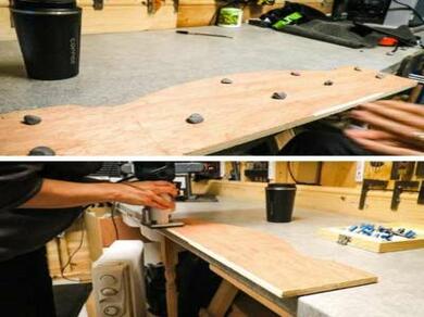 Make sure the router bit isn't too close to the workbench or table in case you cut into it, and don't push too hard with the router, which may loosen the Blu Tack®.
