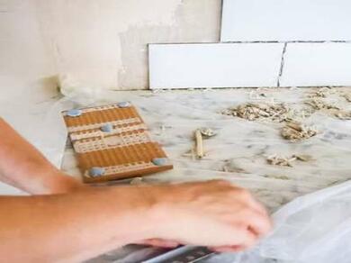 If you’re unsure of where to cut your tile trim when tiling a wall, Blu Tack® your tiles to the wall or on a table, and measure the height of the tiles so you know where to cut the trim.