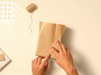 - Add visual appeal to the gift by folding one side of the brown paper twice.