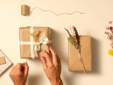 Our final eco-friendly gift wrapping idea is to use dried flowers, leaves, grass and seed heads as compostable decorations to bring your present to life.