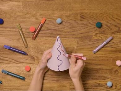 Use Bostik Glitter Glue pens to jazz up party ware like cardboard hats or paper tablecloths. You can even turn this glitter glue craft into a pre-party activity to build up the excitement or for younger children, use it as the main event to keep little ones busy.