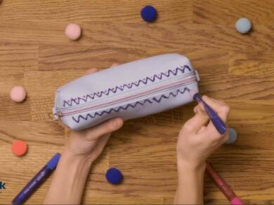 Our first glitter glue art project is to transform an ordinary pencil case to something sparkly and special.