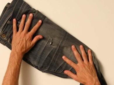 Spread the torn area flat and insert a piece of clean newspaper into the leg of jeans so that it sits neatly under the rip.