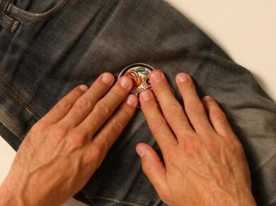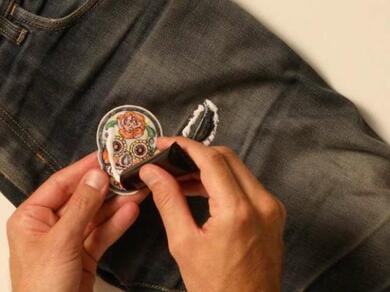 Carefully and immediately press the decorative patch onto the jeans to cover the rip. Hold for a few seconds to help form the initial bond.