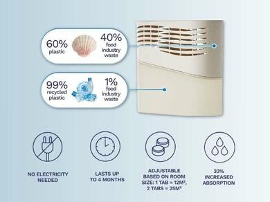 If you're looking for a device that is compact, built from recycled materials, uses tablets containing no perfumes or colourants and can fit into small spaces, look no further than Bostik Breathe.