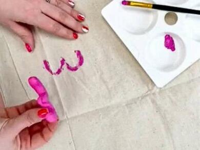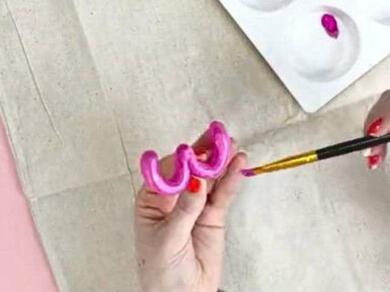 Next, paint your homemade stamp in your colours of choice. Of course, we went for a pink paint!