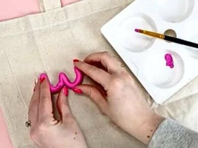 Now you've painted your diy stamp, it's time to make your custom tote bag. Press the Blu Tack® onto the bag so that the paint transfers onto the fabric.