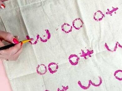 Before you paint your stamp, insert another piece of newspaper inside your tote bag to protect the paint from going through to the other side.