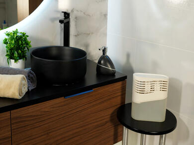 Pour les problèmes d'humidité mineurs, le nouveau dispositif Respire de Bostik peut fournir une solution esthétique qui absorbe l'humidité de l'air pendant 4 à 6 semaines (et même jusqu'à 4 mois en fonction du volume de la pièce et de la source d'humidité) avant que le matériau absorbant n'ait besoin d'être renouvelé.