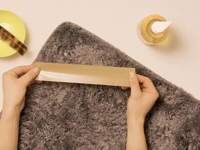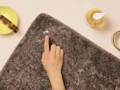 Wskazówka: Chwyć palcami włókna dywanu i spróbuj delikatnie zsunąć masę klejącą z materiału. Uważaj, aby nie wcisnąć jej jeszcze głębiej w dywan. Powtórz czynność kilka razy, aby usunąć większość masy.