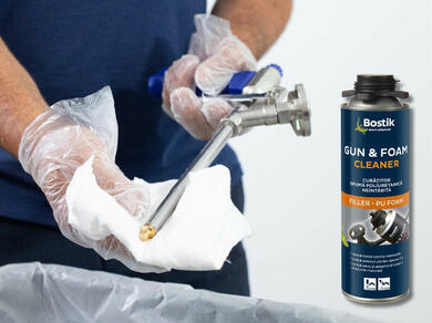 Este simplu! Tot ce aveti nevoie este un tub de PU Cleaner de la BOSTIK, un pistol de spuma si o carpa.